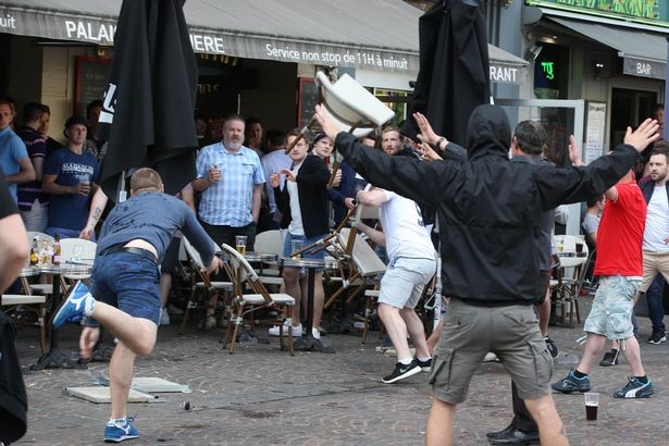 Russische hooligans niet onder de indruk van @EURO2016 dreigement. Rellen in Lille met Engelsen en Wales supp.