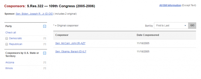 Как видите, речь идет о Михаиле Ходорковском и Платоне Лебедеве (Березовский). Поправку в защиту данных граждан инициировал Sponsor Джозеф Байден, а его Cosponsor-ами выступал Маккейн и ... Обама.