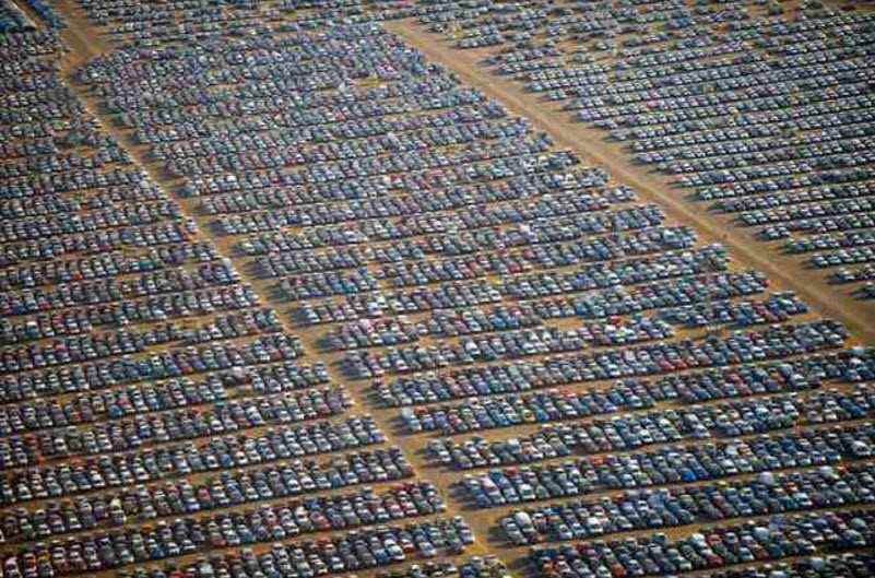 Огромные площадки с новехонькими машинами. Автомобильные компании не могут остановить конвейер, потому что тогда придется закрывать заводы и увольнять тысячи и тысячи работников. В этом случае, кстати, начнется эффект домино — разорятся сталелитейные заводы, чья продукция используется для изготовления автомобильных корпусов, закроется куча других предприятий, которые изготавливают узлы и агрегаты.