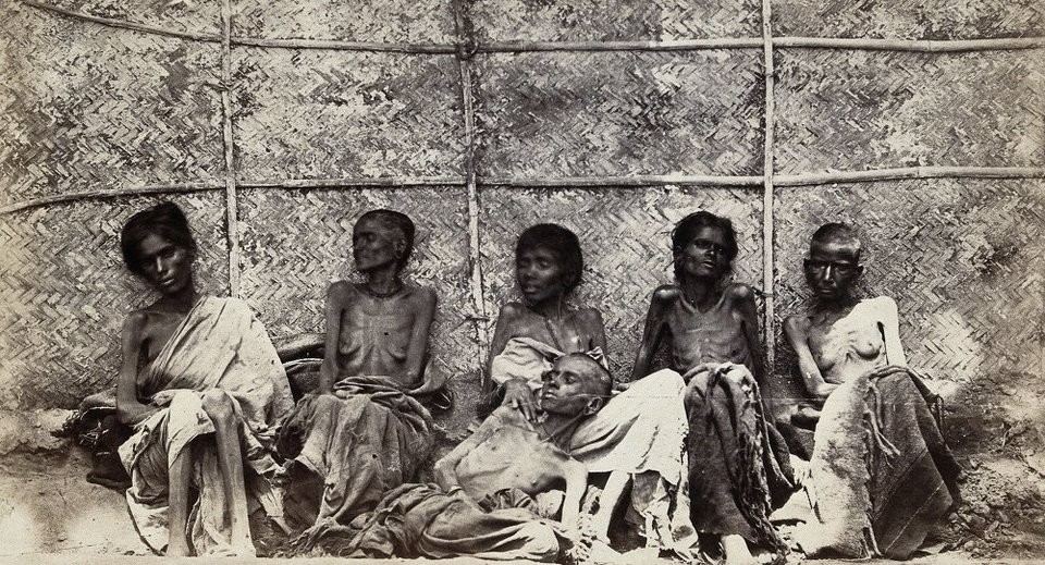 Тем временем массовый голод делал свои "успехи", охватывая раз за разом всё большую территорию колониальной Индии. Это было результатом сознательной политики британских властей по разрушению сельской общины и разорению местного ремесленного производства, что освобождало рынок для английских промышленных товаров. По сообщению британского генерал-губернатора от 1834: "Равнины Индии белеют костями ткачей" [5].