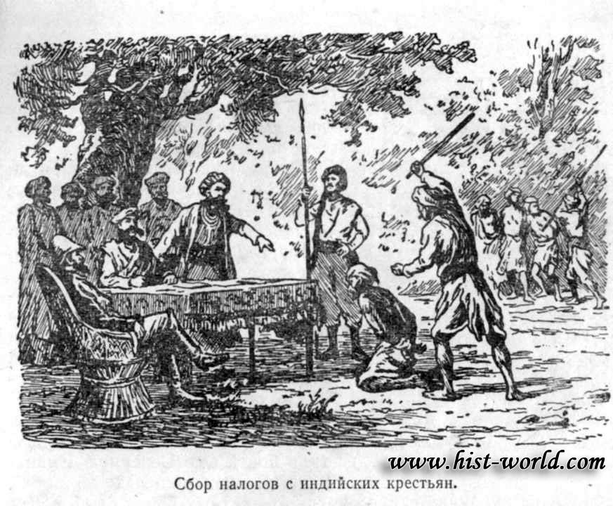 Британские властители Бенгалии отдавали сбор налогов на краткосрочный откуп - служащим Компании и ростовщикам, а "в помощь" сборщикам придавали войска. Во время сбора налогов применялись изощренные пытки, жертвами которых были и женщины, и дети.