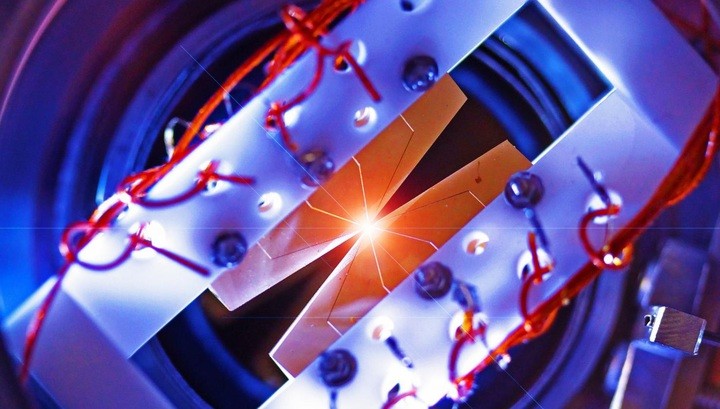 Устройство, созданное под руководством Кристофера Монро (Christopher Monroe), представляет собой набор из пяти связанных друг с другом кубитов на базе ионов иттербия – это редкоземельный металл, один из самых популярных и хорошо изученных материалов для изготовления ячеек памяти и простейших вычислительных модулей подобных устройств.