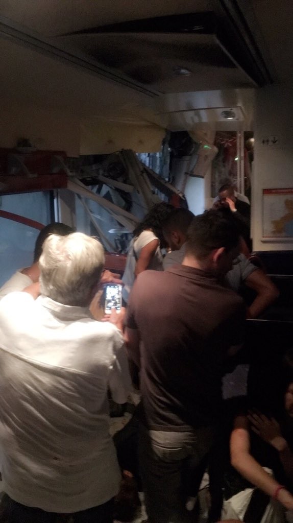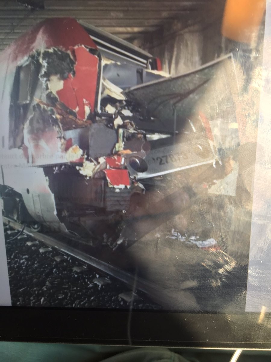 Voila le train et ce qui s'est passé, on voit pas bien bien mais c'est énorme et y a un énorme trou #accidentssncf