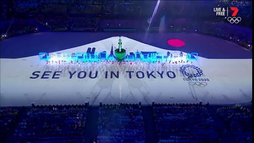 Под звуки олимпийского гимна флаг Игр был передан организаторам следующих соревнований, которые пройдут в японском Токио.