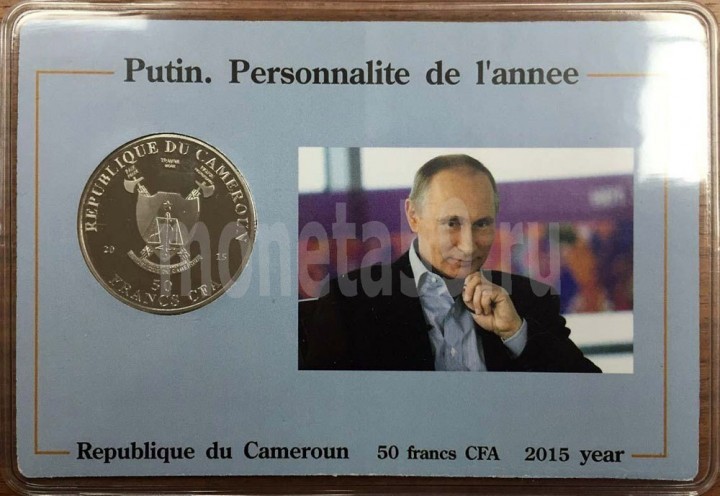 Монету, достоинством 50 франков КФА, отчеканил Центральный Банк Республики Камерун. На ней изображен президент России на фоне Земли. Деньги-сенсацию из далекой Африки расхватывают российские коллекционеры, как горячие пирожки!