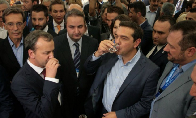 Аркадий Дворкович выпил водки с Алексисом Ципрасом на выставке в Салониках