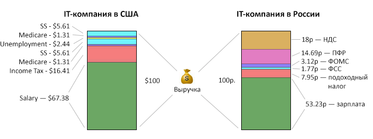 Возьмём к примеру две IT-компании, в России и в США:
