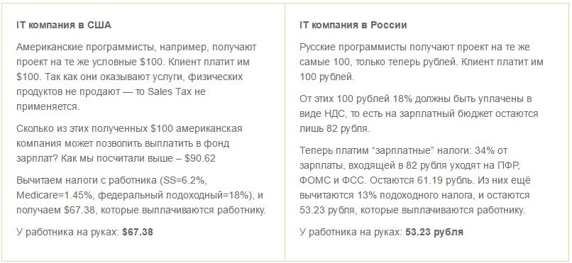 Правда лишь в том, что при одних и тех же продажах, американская компания позволит себе платить сотрудникам бóльшие зарплаты. Сотрудники получат больше денег на руки. Меньшие налоги и более высокие зарплаты напрямую связаны друг с другом.