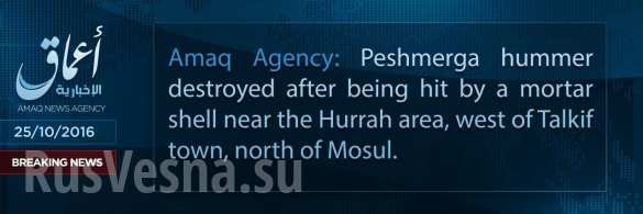 После того, как вечером 25 октября была опубликована инфографика, медиа-крыло ИГИЛ* — агентство «Аль-Амак» продолжило публиковать информацию о потерях противника, частично подтверждая свои слова фото и видео материалами.