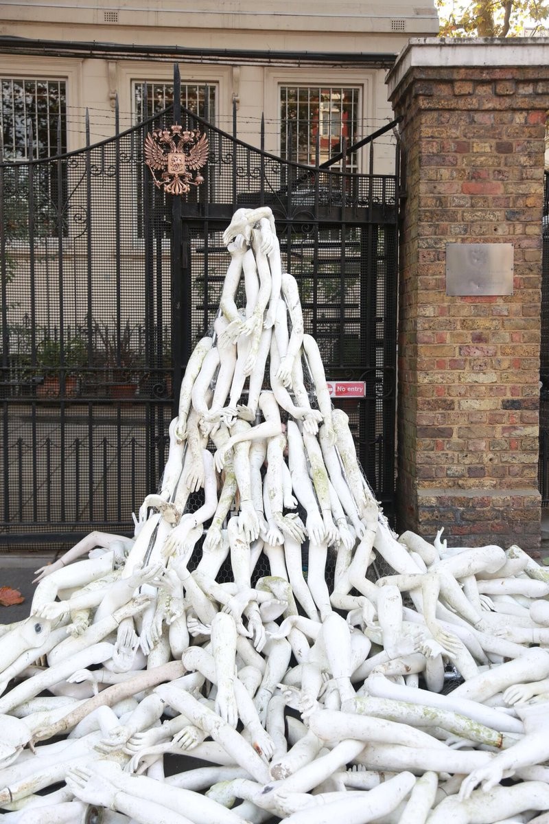 Сегодня под российским посольством в Лондоне "борцы за мир" устроили акцию, заблокировав главный вход жуткой инсталляцией. Активисты двух кампаний - "Сирийская кампания" и "Солидарность с Сирией в Великобритании" забросали территорию перед российским посольством пластиковыми конечностями с манекенов взрослых и детей. Протестовали против "уничтожения Алеппо". Мотивация - попытка сорвать планы Асада и Путина и предотвратить "дальнейший ад", в котором находятся жители Алеппо.