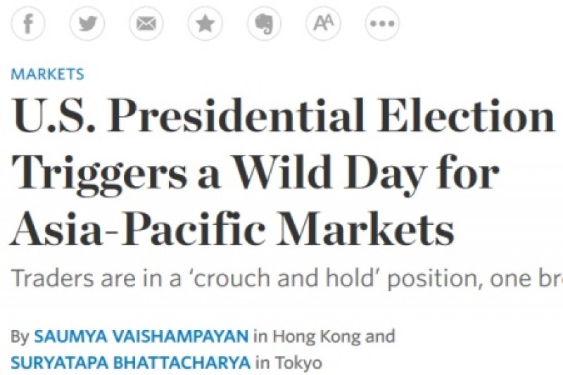И все это из-за плохих новостей для бизнеса, который ожидает с победой Трампа серьезную турбулентность на мировых рынках. Для мирового бизнесе, который сделал ставку на Клинтон, новости из США стали в шоке.
