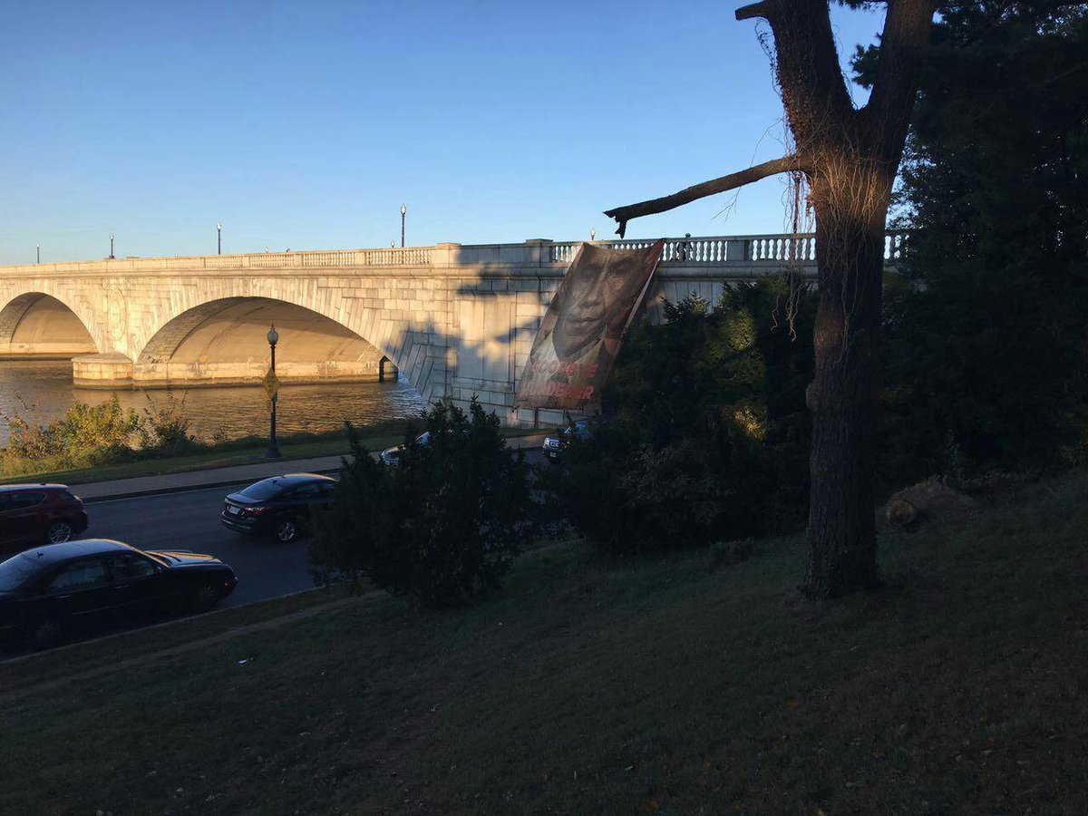 "Прощай, убийца". В Вашингтоне вывесили баннер с изображением Обамы