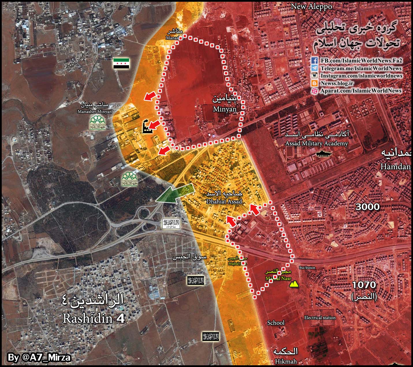 Несколько дней назад наступление боевиков выдохлось, что уже привело к потери ими застройки 1070 и школы Хикма. Сегодня они оставили Миньян, ну а ближе к ночи в ходе ожесточенных боев их начали вытеснять из квартала Аль-Ассад.