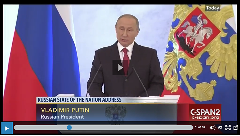 Скриншот послания В.В. Путина Федеральному собранию, показанный на канале C-SPAN