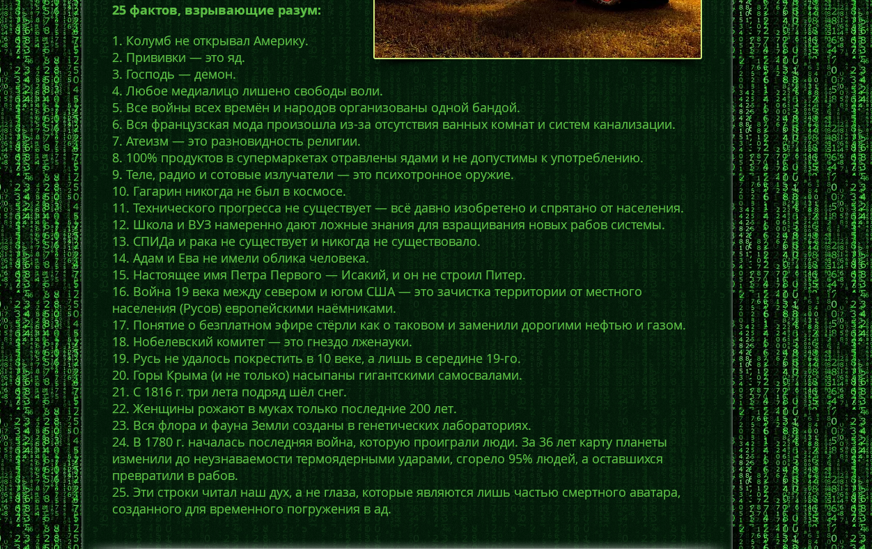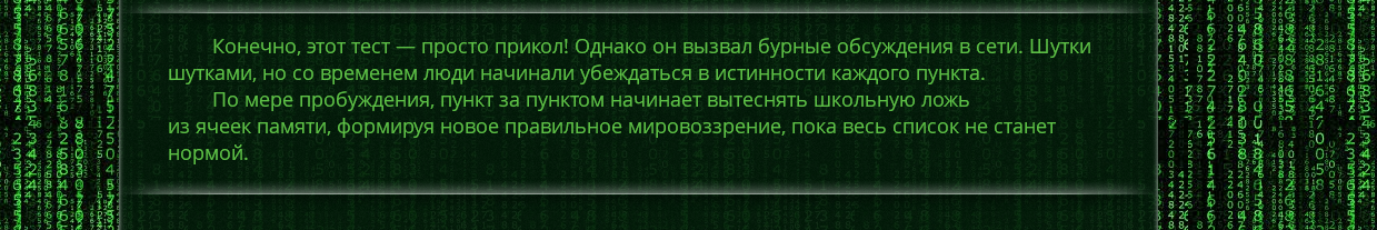 Я предлагаю список из 25-ти пунктов. Их принятие или непринятие покажет, насколько глубоко вы увязли в матрице.