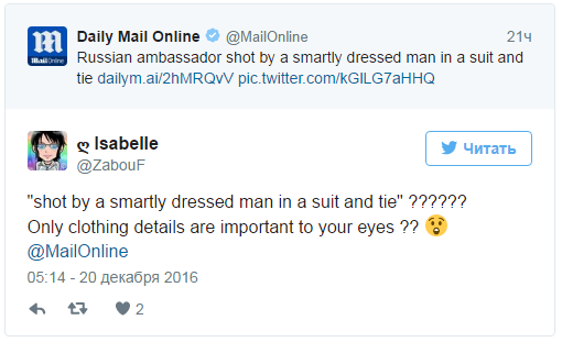 Соцсети осудили Daily Mail за твит о костюме убийцы российского посла » E-News.su | Cамые свежие и актуальные новости Новороссии, России, Украины, Мира, политика, аналитика
