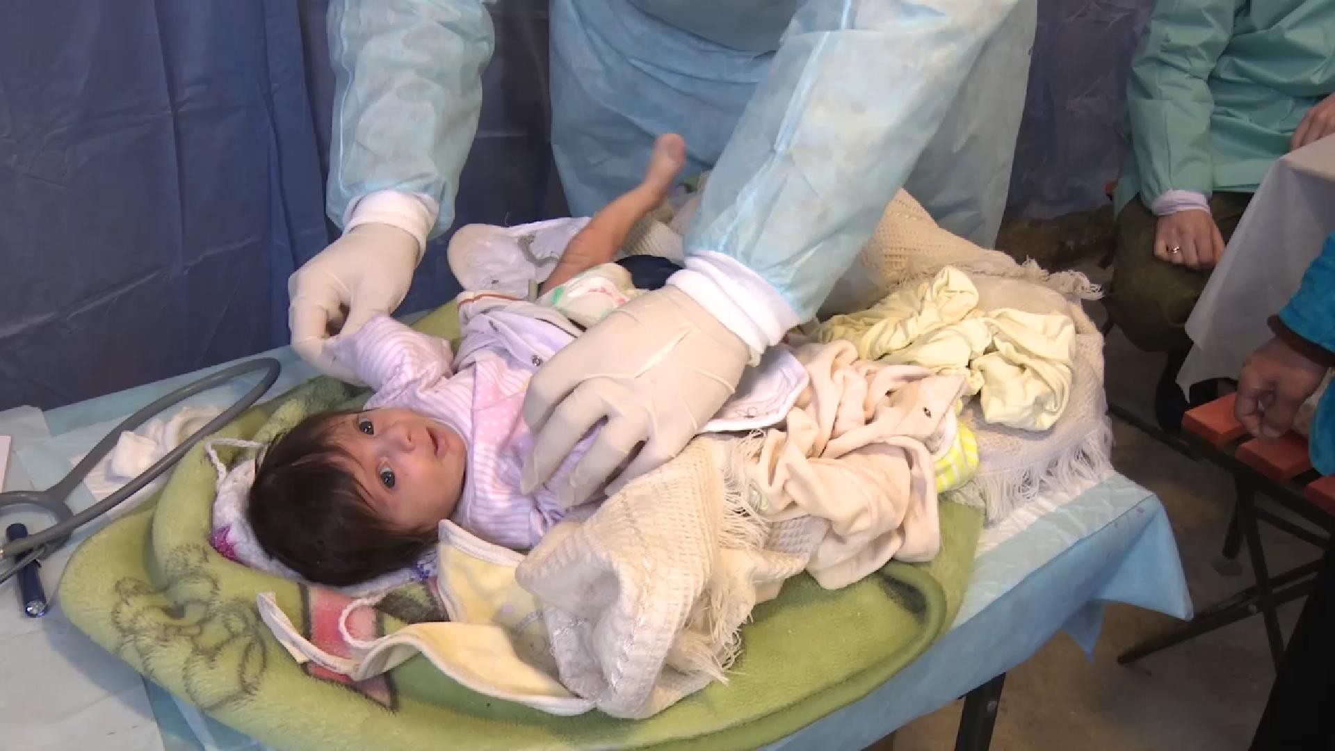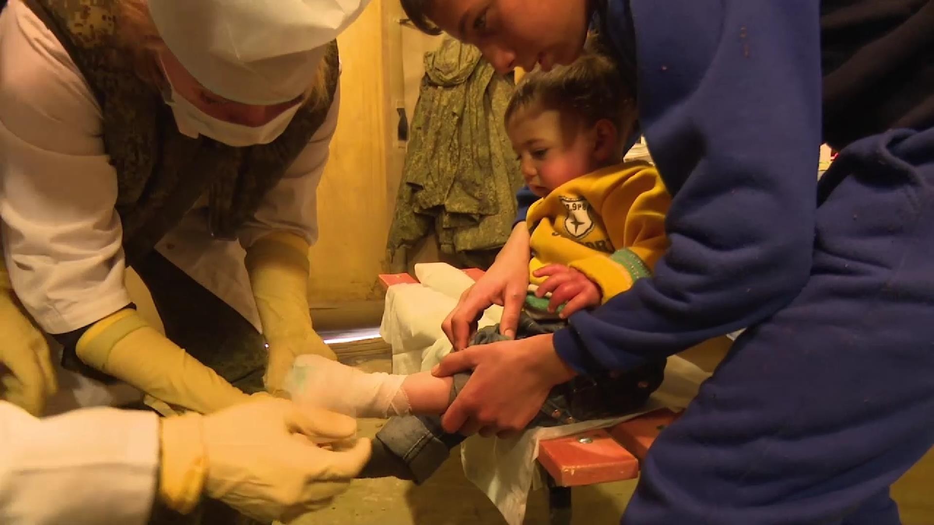 Российские военные медики постоянно принимают раненых людей и оказывают им помощь в лагерях беженцев и в точках выдачи гуманитарных грузов.