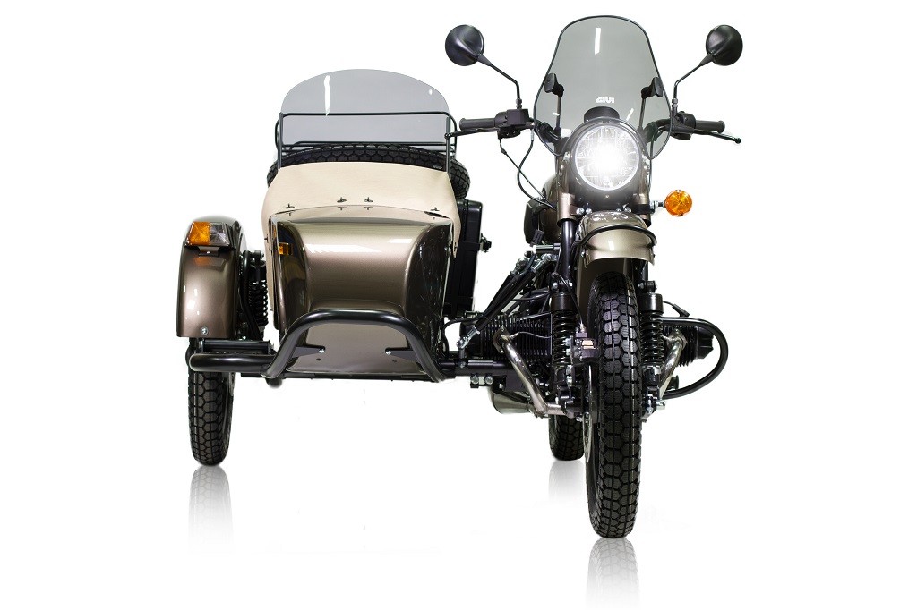 Колесо на коляске при этом вращается с помощью карданного вала. Все колёса оборудованы дисковыми тормозами и амортизаторами немецкой марки Sachs. Так чем же отличается специальная версия «Урала»? Комплектацией! Ural Ambassador Limited Edition щеголяет целым набором опций и аксессуаров. К примеру, двигатель и коробка передач окрашены в чёрный цвет, а коляска оснащена багажником и ковриками.