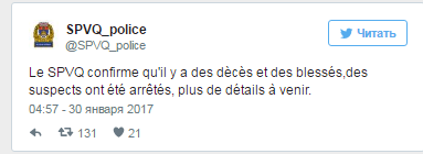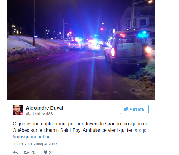 Трое вооруженных мужчин ворвались в культовое сооружение Квебека прямо во время вечерней молитвы, которая совершалась в 20:00 по местному времени (04:00 по мск, 30 января). В тот злополучный момент в мечети пребывало около 40 верующих.