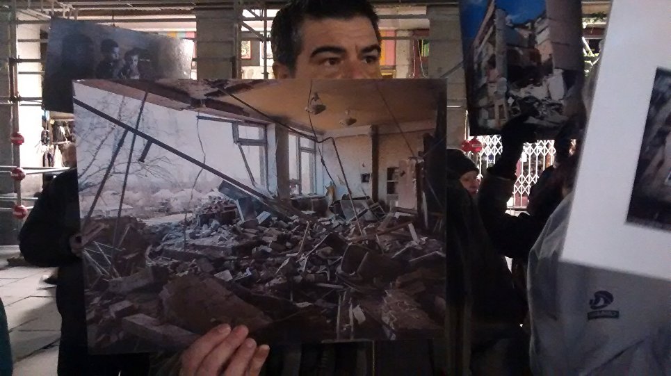 Акция проходила под лозунгом "Киев бомбит гражданское население. Донбасс сопротивляется". В руках у участников были фотографии разрушенных населенных пунктов востока Украины, а также флаг ЛНР. "Фашизм вон из Донбасса!", "Нет НАТО, базы вон!", "Донбасс победит!", — скандировали собравшиеся.