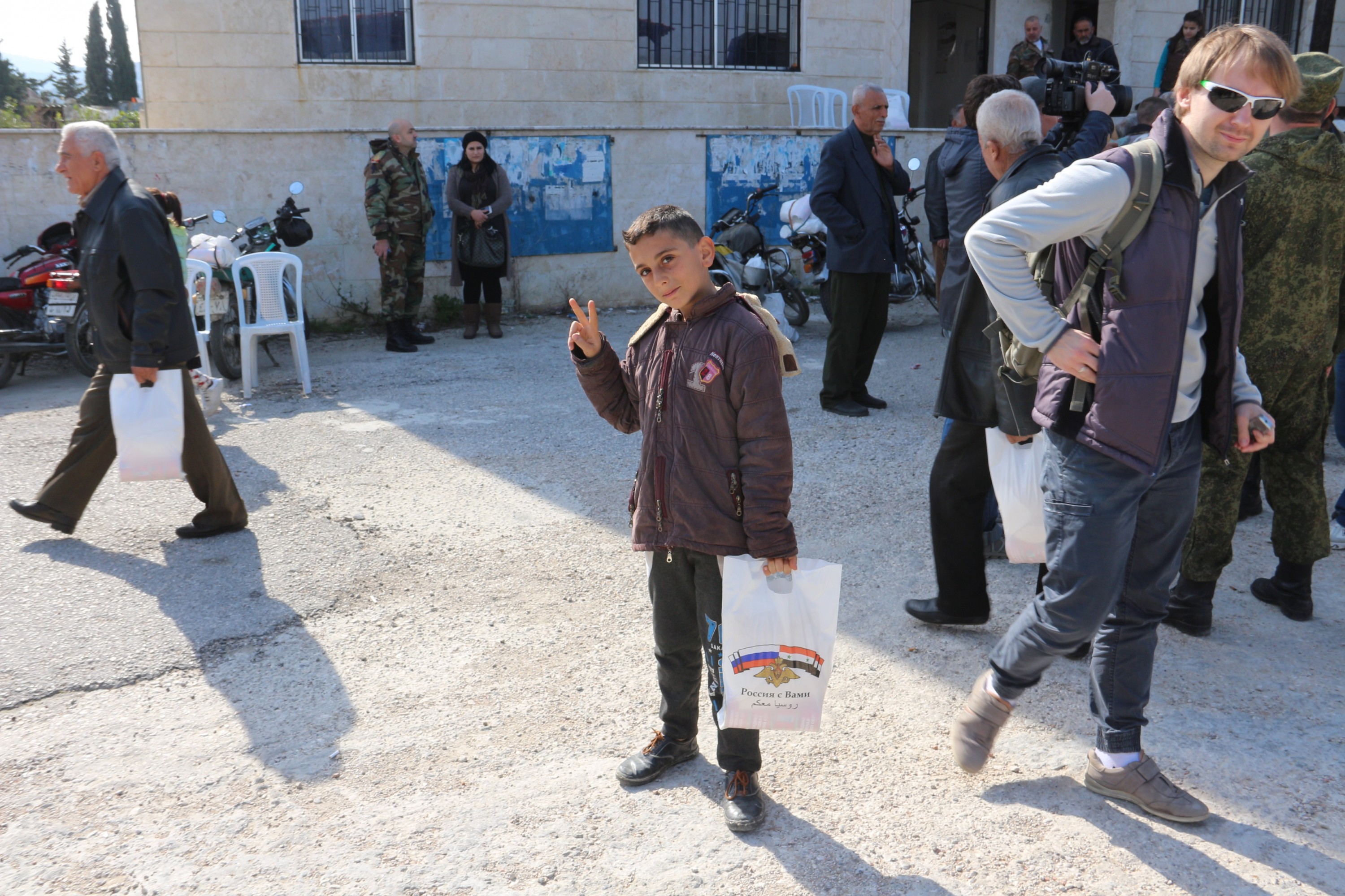 Приезд российских военных в тот или иной населенный пункт САР – особое событие. Больше всех, конечно, радуются дети и подростки. Для них каждый визит военнослужащих – очередная возможность сфотографироваться со своими кумирами. Еще по дороге к месту назначения они махали военнослужащим руками и улыбались, а как только колонна военной российской техники остановилась детвора окружила «вежливых людей» для снимка на память.