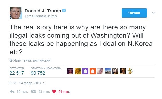 Либеральная публика уже поиздевалась над этим последним твитом президента Трампа. Но ведь, по сути-то, он прав. "Настоящая история заключается в том, почему так много утечек происходит из Белого Дома?" Президент прав: утечки - это огромная проблема. И если бы политическая обстановка в стране была не столь поляризована, все согласились бы, что утечки являются тем, что они есть: попыткой некоторых манипулировать общественным мнением ради достижения желаемого политического результата.