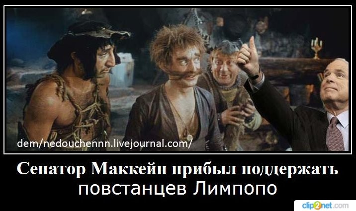 Ну всё как мы смеялись: кровавый Айболит захватил власть с помощью русских хакеров, бывший Бармалей укрылся от расправы на Украине. США посылает шестой флот к берегам Лимпопо, непрерывная трансляция бомбардировок русских самолетов. Кровь, слезы, и бедная окровавленная девочка, которую многие уже узнают в лицо, вылазит из разбитой ракетами школы. Всё это на фоне карты Лимпопо из Гугл мэпс. Мировое сообщество в шоке, ноты протеста сыпятся одна за одной, в ООН собирается совет безопасности, на котором представитель украины трясёт фотографиями бедных лимпоповцев и требует новых санкций для России.