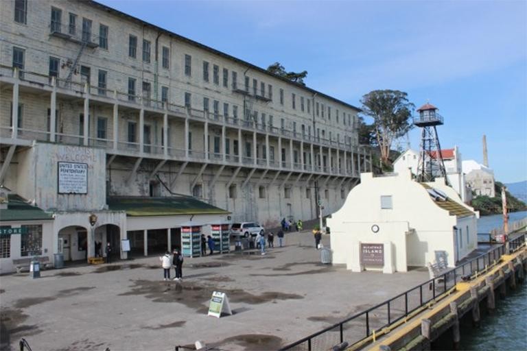 Сразу по прибытию (ходит паром от 33 пирса Сан-Франциско), обращаешь внимание на плакат, сообщающий, что тюрьма Алькатрас пребывает в статусе «Национального парка США». Все желающие могут жертвовать деньги на «восстановление» и «развитие». Представляете, например, Бутырку «московским парком»?