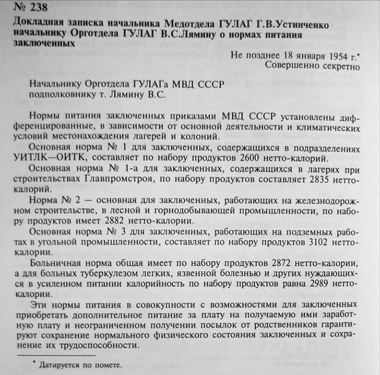 Для сравнения — норма питания № 1 (основная) заключённого ГУЛага в 1948 году (на 1 человека в день в граммах):