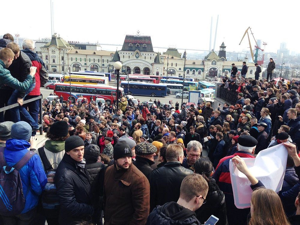 Как сообщает «ОВД-Инфо«, во Владивостоке звонящие на горячую линию сообщили уже о более, чем тридцати задержаниях на митинге, который проходит на Привокзальной площади.
