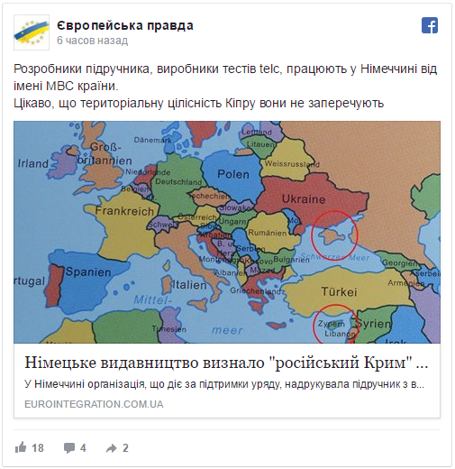 СМИ: в Германии вышел учебник с российским Крымом на карте