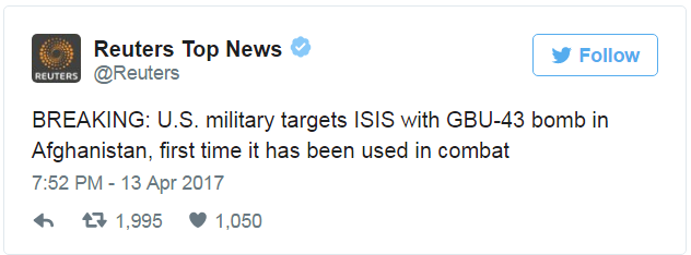 В Белом Доме позже подтвердили применение GBU-43/B и заявили, что пытались не допустить жертв среди мирного населения.