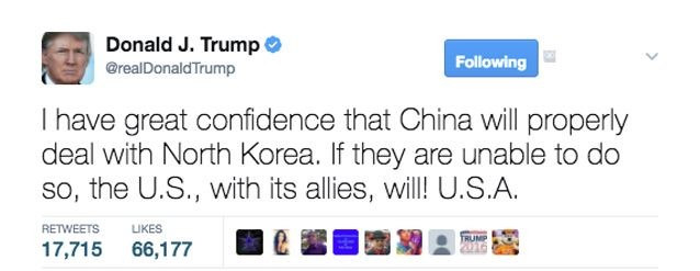 Так, например, Трамп призывает Китай «разобраться» с КНДР, делая акцент на том, что, если у Китая это сделать не получится, США помогут. Ну, разумеется, кто бы сомневался, где США, там и бомбы «матери».