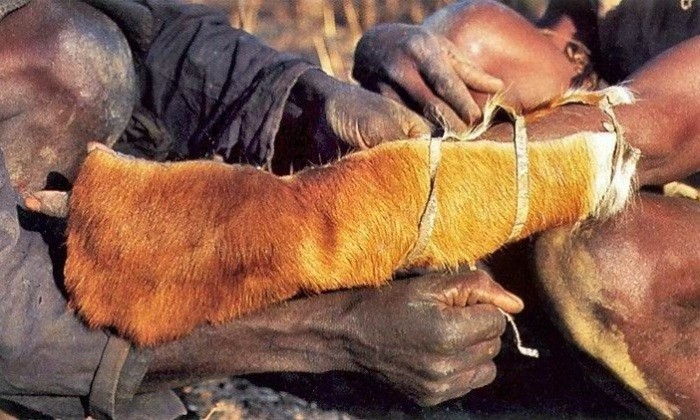 Первоначально выбирается смельчак, который собственно будет живцом. Его руку обматывают шкурой бизона. В ответственный момент она станет отвлекающим маневром при поимке пресмыкающегося.