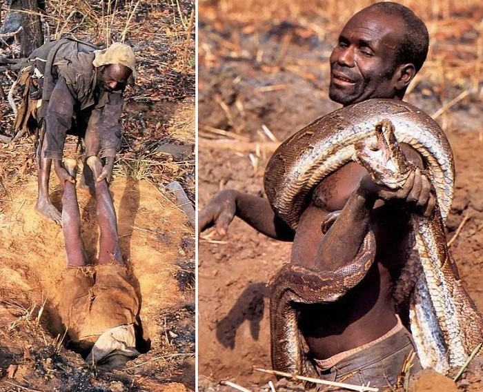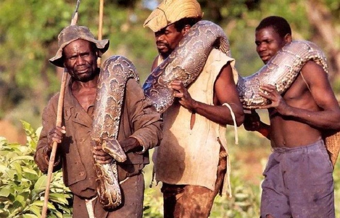 Поймать питона на живца: опасная забава для настоящих африканских мужчин