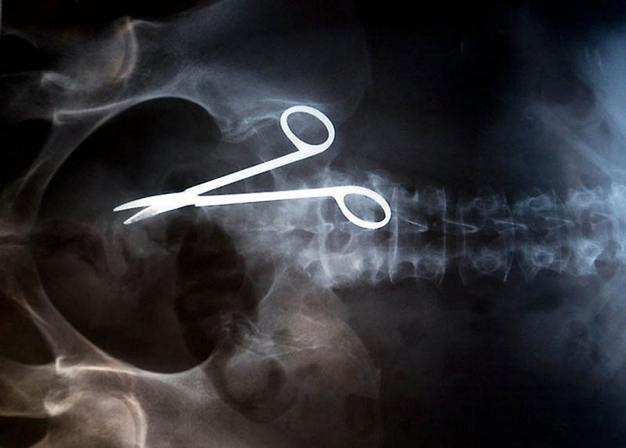 Сувенир от хирурга. После успешной операции по удалению раковой опухоли пациент продолжил жаловаться на сильные боли. Сперва ему сказали, что так и должно быть после хирургического вмешательства. Но спустя месяц врачи обнаружили источник боли: в теле пациента был забыт 13-сантиметровый инструмент. Подобная ошибка обошлась клинике в 97 тысяч долларов США, которые пациент успешно отсудил у медицинского учреждения.