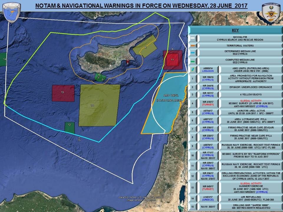 Кроме того, согласно извещению для авиационного персонала (NOTAM) и навигационного предупреждения для мореплавателей, с 18 по 30 июня в районе Средиземноморья вблизи Тартуса проводятся ракетные пуски с кораблей ВМФ России.