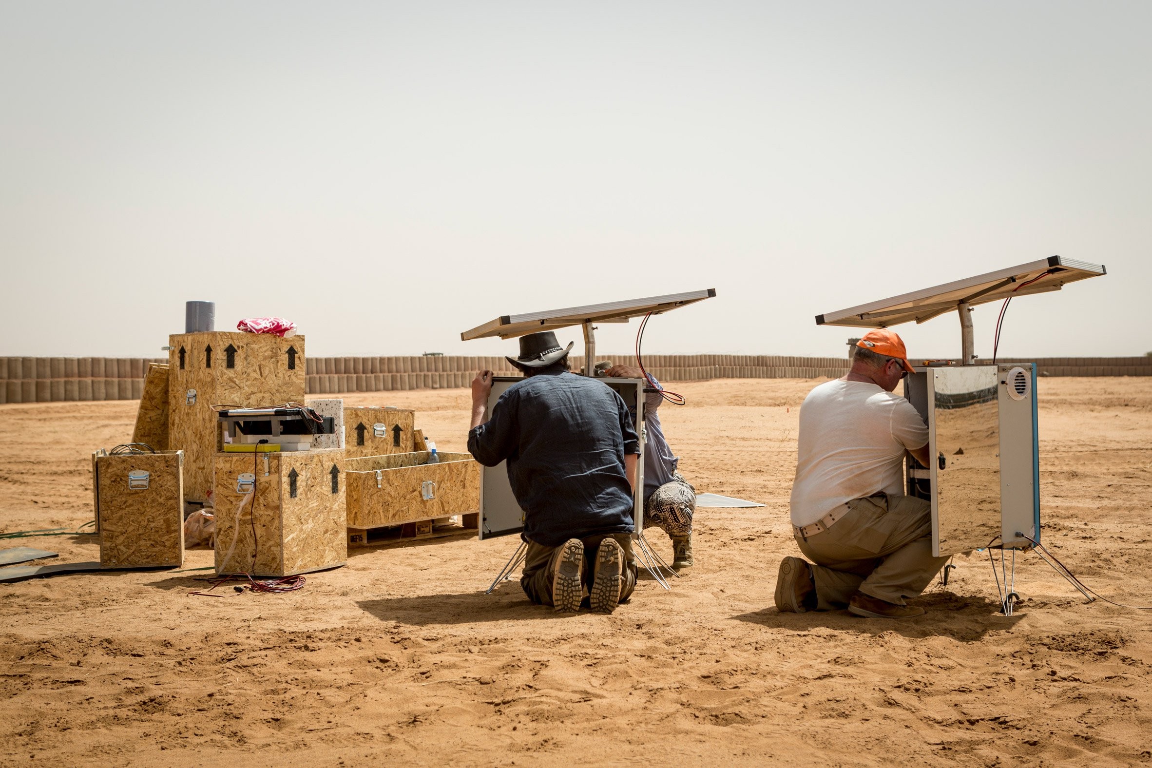 Испытания в Нидерландах прошли гладко, а вот когда команда разработчиков «Близнецов» приехала в Мали, пришлось дорабатывать конструкцию. Холодильник перегревался и выходил из строя, а вода испарялась с поверхности пластины, не успев попасть в коллектор. В перегреве оказались виноваты солнечные лучи, отражённые песком пустыни; решить проблему удалось, обернув устройство дополнительным слоем изолятора. С испарением справились, закопав трубу, в которую попадает конденсат, на два метра под землю: там не так горячо, и охлаждать трубу легче. Правда, песок быстро прогрелся по всей глубине, и преимущества сошли на нет. ТОгда инженеры перебрали холодильник и поменяли конфигурацию трубок с охлаждённым воздухом. После этого в коллекторе наконец обнаружилась вода и даже немного льда.