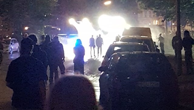 Кричащие подростки побежали в сторону домов, некоторые укрылись за мусорными контейнерами на обочине и кидали в водометы пустые бутылки и камни. Несколько человек выскочили на проезжую часть, откуда так же бросали в машины разные предметы.