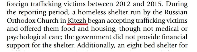 Американское внешнеполитическое ведомство распространило доклад о противодействии торговле людьми. В нём Госдеп делает обзор государств, где, по мнению американских дипломатов, власти не слишком рьяно противостоят преступным действиям или не оказывают пострадавшим надлежащей помощи. Не обошлось и без традиционных для таких документов замечаний в адрес российских властей. Однако в этом докладе специалисты Госдепа взяли новые высоты в познаниях о России, указав на пробелы в работе с жертвами работорговли в городе Китеже.