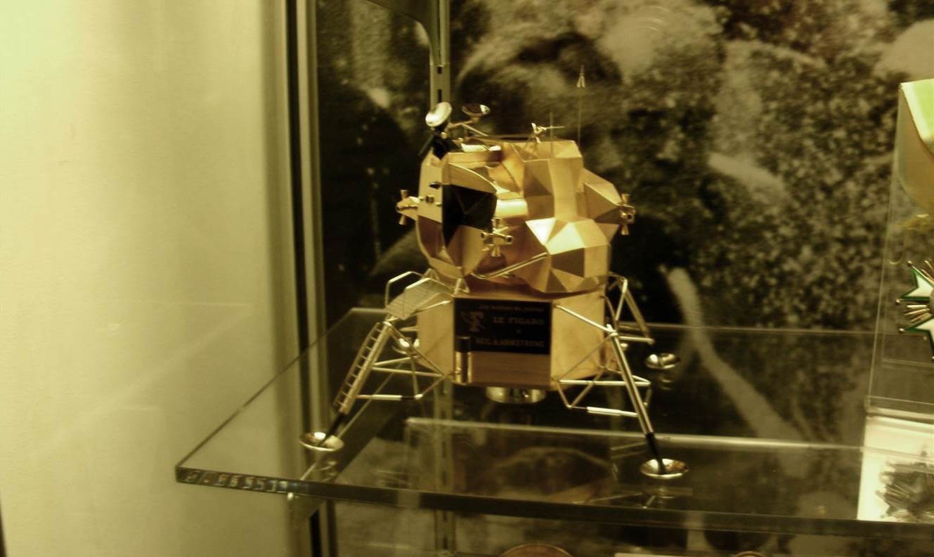 Золотой лунный модуль Нилу Армстронгу, Баззу Олдрину и Майклу Коллинзу подарила компания Cartier после исторической высадки на Луну экспедиции "Аполлон-11" 20 июля 1969 года. Позднее астронавты передали его Музею воздуха и космоса Армстронга в родном для Нила городе — Уапаконете.