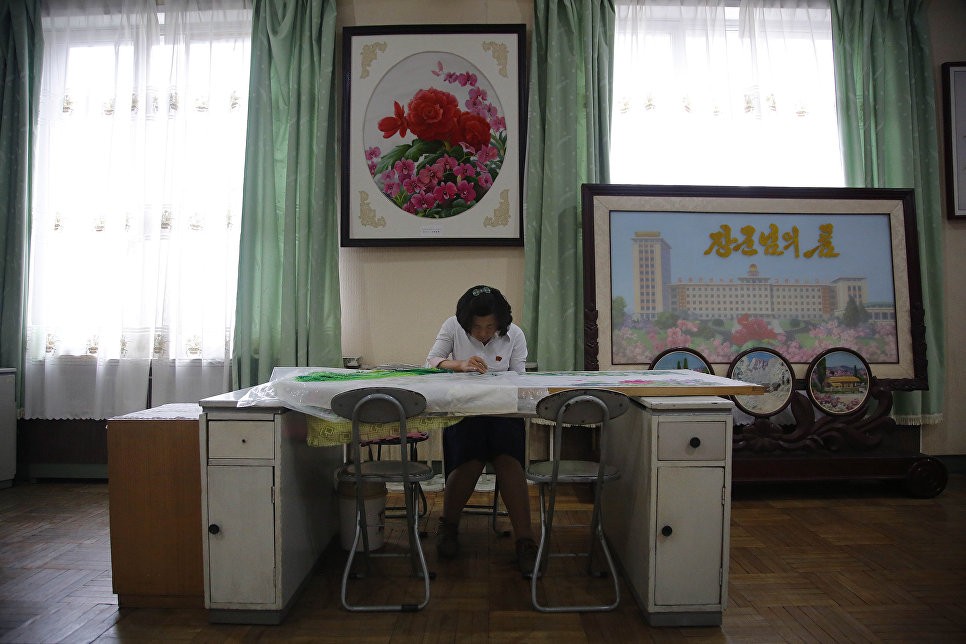 Занятие по шитью в Пхеньяне, Северная Корея