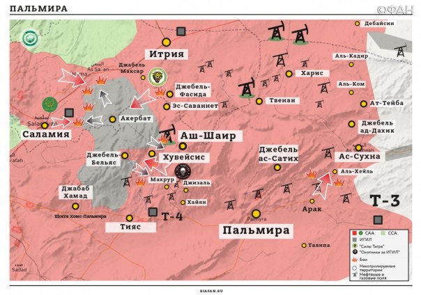 В центральной Сирии САА и ее союзники отбили у ИГИЛ всю территорию к северу от Пальмиры, освободив, таким образом, от группировки террористов порядка 2 тыс. кв. км.
