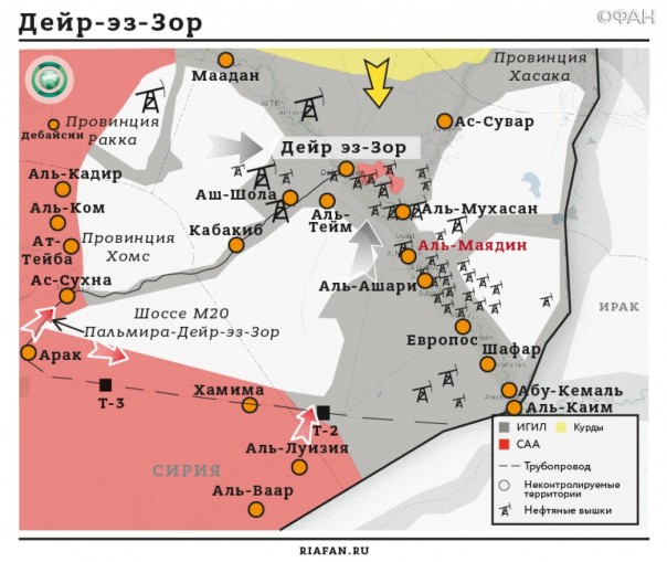Если данные сообщения подтвердятся, то в настоящий момент САА и ее союзники находятся в пределах досягаемости подконтрольной ИГИЛ деревни Каббажб, расположенной всего в 50 км от города Дейр-эз-Зор.