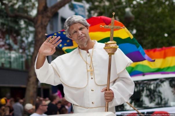 Подвернувшийся переводчик-россиянин, из тех, кто стоял до этого возле скамейки, объяснил, что участники гей-парада, которым перевели слова Петровича, очень благодарны ему за толерантность и понимание прелестей однополой любви.