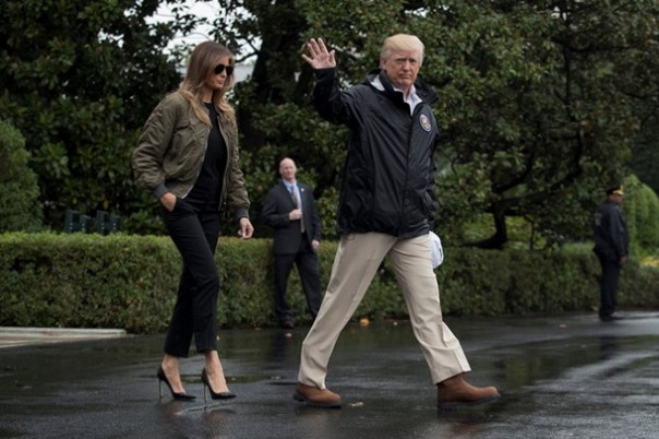 В офисе Трампа сообщения СМИ прокомментировали следующим образом: "Это печально, что пока страна страдает от стихийного бедствия, народ переживает об ее туфлях".