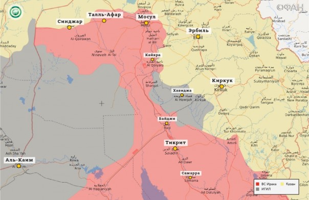 Еще группа террористов ИГ арестована к северу от столицы Ирака. По информации Alsumaria News, радикальные исламисты пробрались в Багдад под видом беженцев из провинции Анбар. Задержанные обвиняются в организации ряда терактов в провинции Анбар и подготовке новых диверсий в столице Ирака.