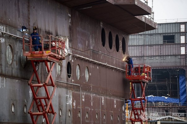 Рабочие на судостроительном заводе фирмы STX Europe в городе Сен-Назер