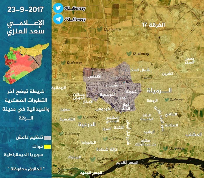 Сирийские войска наступавшие к югу-востоку от Ракки встретились с войсками наступавшими к северо-западу от Дейр-эз-Зора вдоль Евфрата.