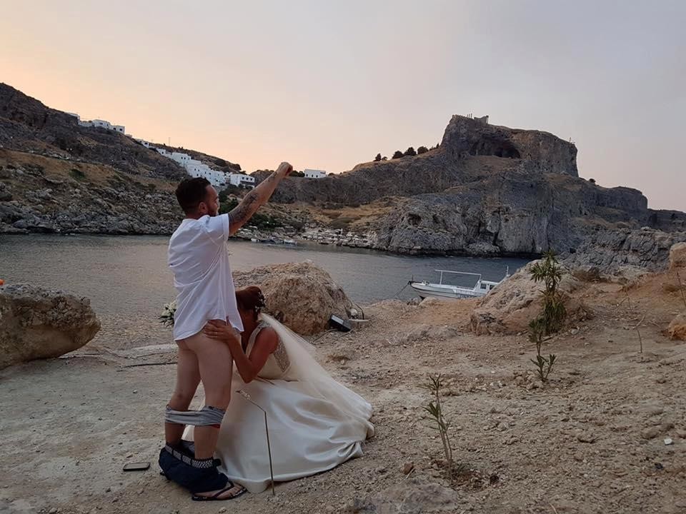Молодые супруги рассказали изданию The Sun, что хотели повеселить друзей необычным снимком и не ожидали, что он станет так популярен. А жители острова Родос не разделили веселье молодожёнов.